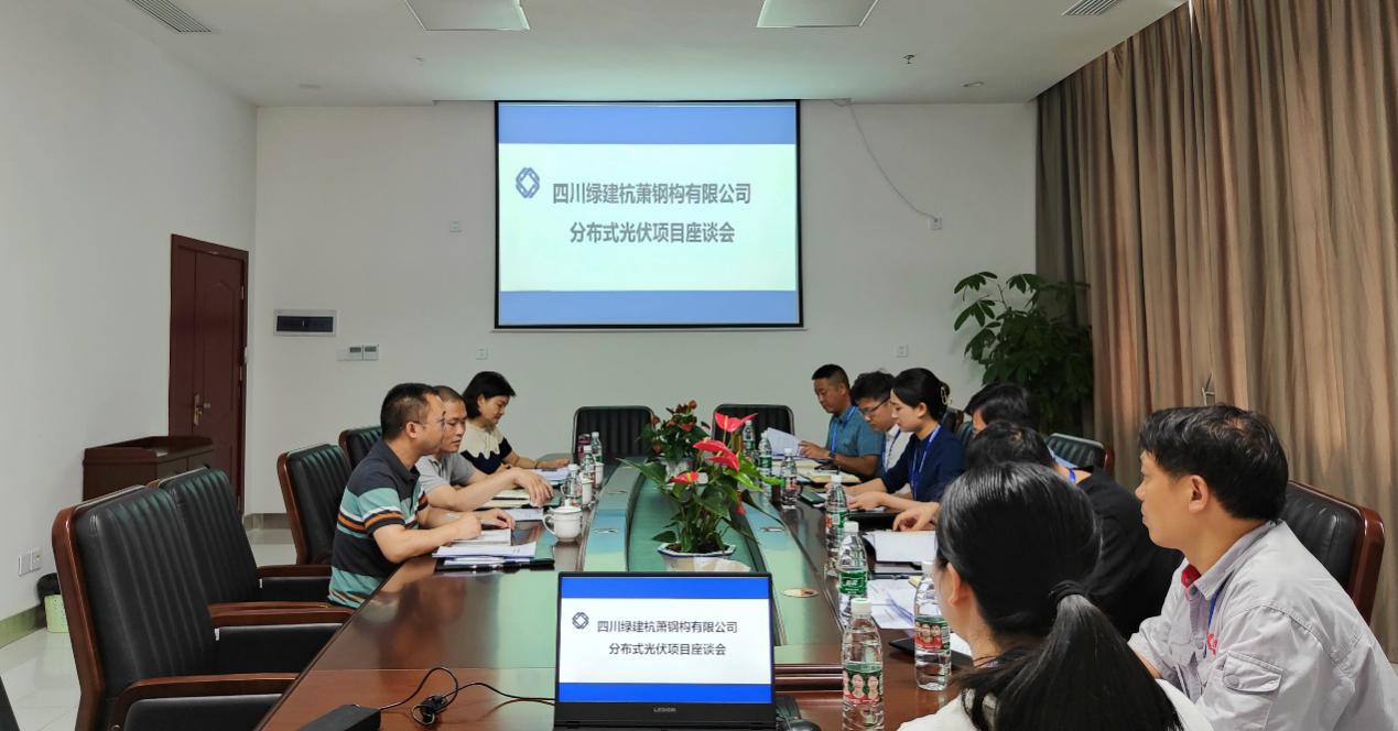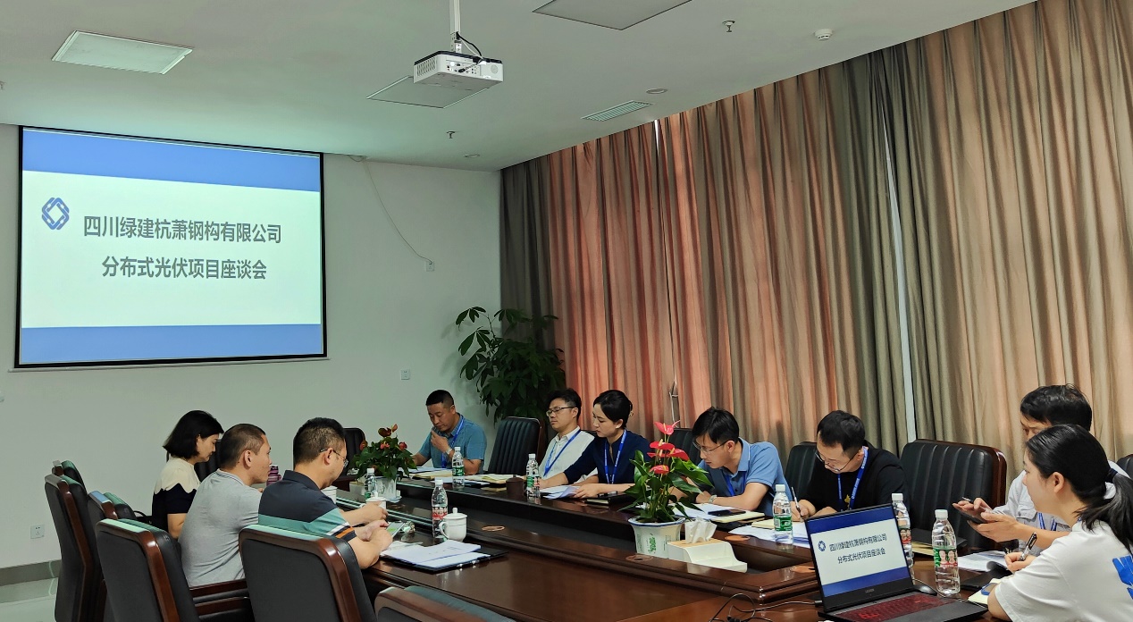 2022年6月30日上午,四川綠建杭蕭鋼構(gòu)有限公司(以下簡稱:綠建杭蕭)與四川省能源投資集團(tuán)有限責(zé)任公司相關(guān)負(fù)責(zé)人共同召開分布式光伏項(xiàng)目座談會(huì)。綠建杭蕭總經(jīng)理古敏同志攜領(lǐng)導(dǎo)班子與相關(guān)部門負(fù)責(zé)人參加會(huì)議。